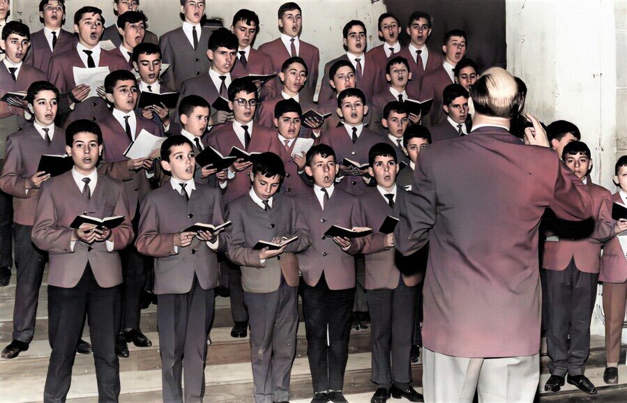 Como la asistencia a la misa era obligatoria, para poder ensayar, se exigió que los coristas asistiésemos a la una del mediodía a una misa especialmente oficiada para nosotros; esto suponía una dificultad insalvable para poder ir a casa, comer y volver a las tres a clase.